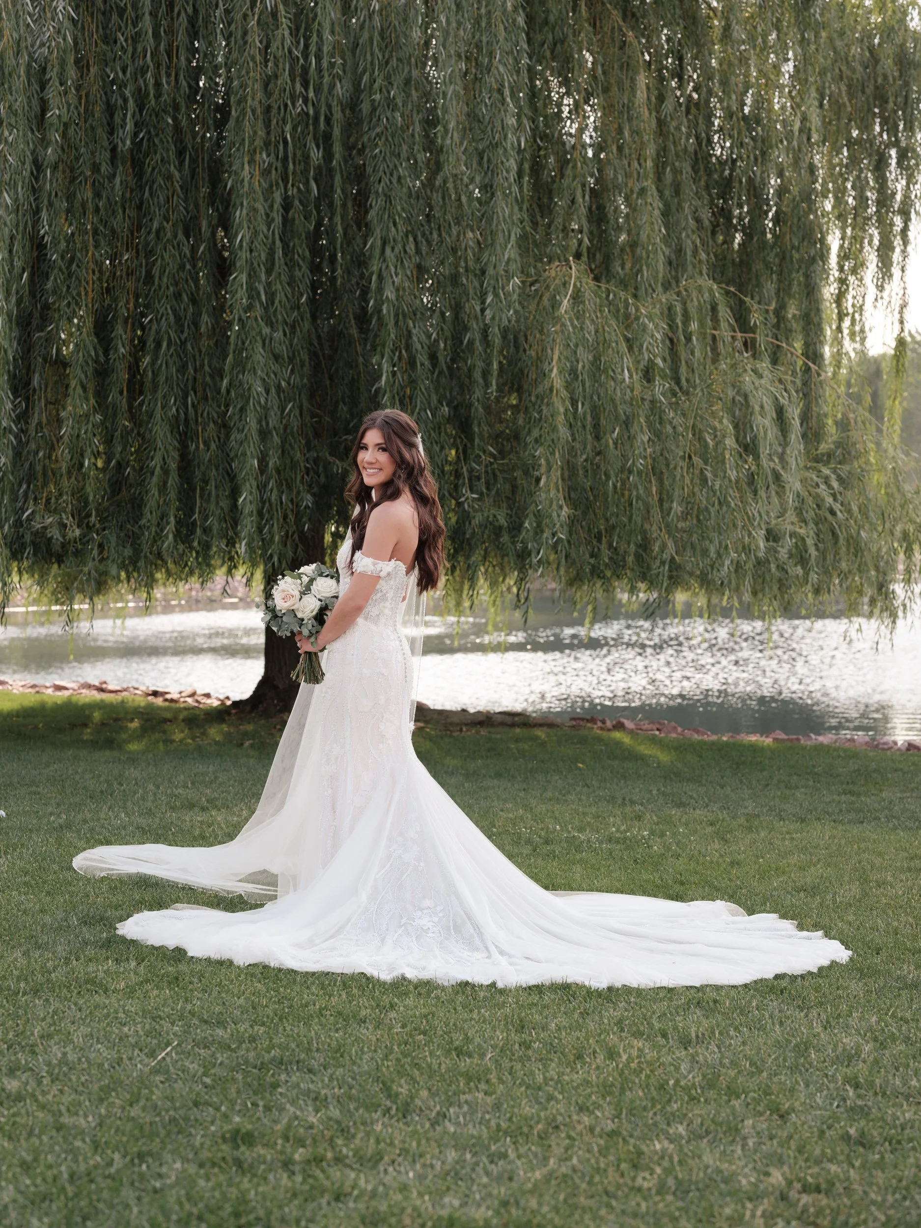 With the oaks, maples, and willow trees filling the rolling hills with beauty, Ben and Brianna's love shone brightly, a beacon of joy. The bride, resplendent in her gown, shared a heartfelt first look with her father, a tender moment filled with love and anticipation. Against the backdrop of the island in the center of the heart-shaped pond, Ben and Brianna exchanged vows, their love echoing across the tranquil waters. As she made her way down the aisle, escorted by her father's loving embrace, Ben's eyes welled with tears at the sight of his bride, her beauty taking his breath away.